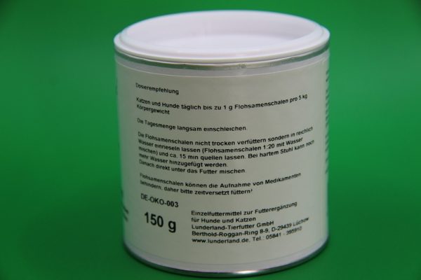 Flohsamenschalen wirken gegen Durchfall indem sie überschüssige Flüssigkeit aufnehmen und die Konsistenz des Kots verbessern. Bei Verstopfung fördert der hohe Rohfasergehalt die Verdauung und macht den Kot geschmeidig. Die Darmperistaltik wird angeregt. Die Flohsamenschalen helfen zudem bei Analdrüsenproblemen durch die Verfestigung bzw. Erhöhung des Kotvolumens. Bei Übersäuerung sind Flohsamenschalen ebenfalls hilfreich, da sie basisch sind und überschüssige Säuren binden.